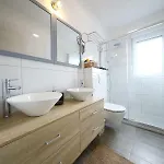 A kényelem érdekében az apartmanban fürdőkád biztosított. A fürdőszobában hajszárító és fürdőlepedők szintén elérhető.